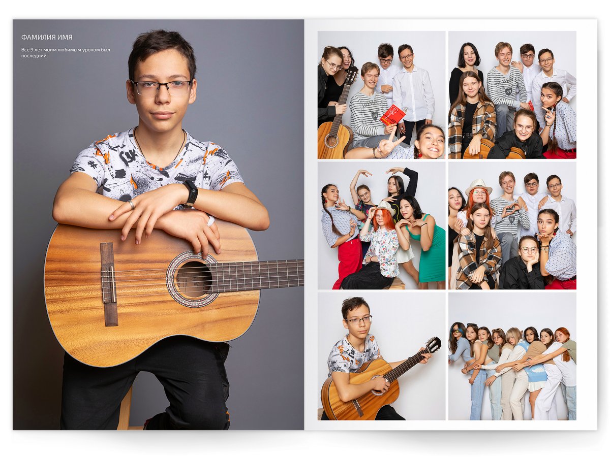 - 1 большой портрет на страницу и от 2 до 4 фото на выбор