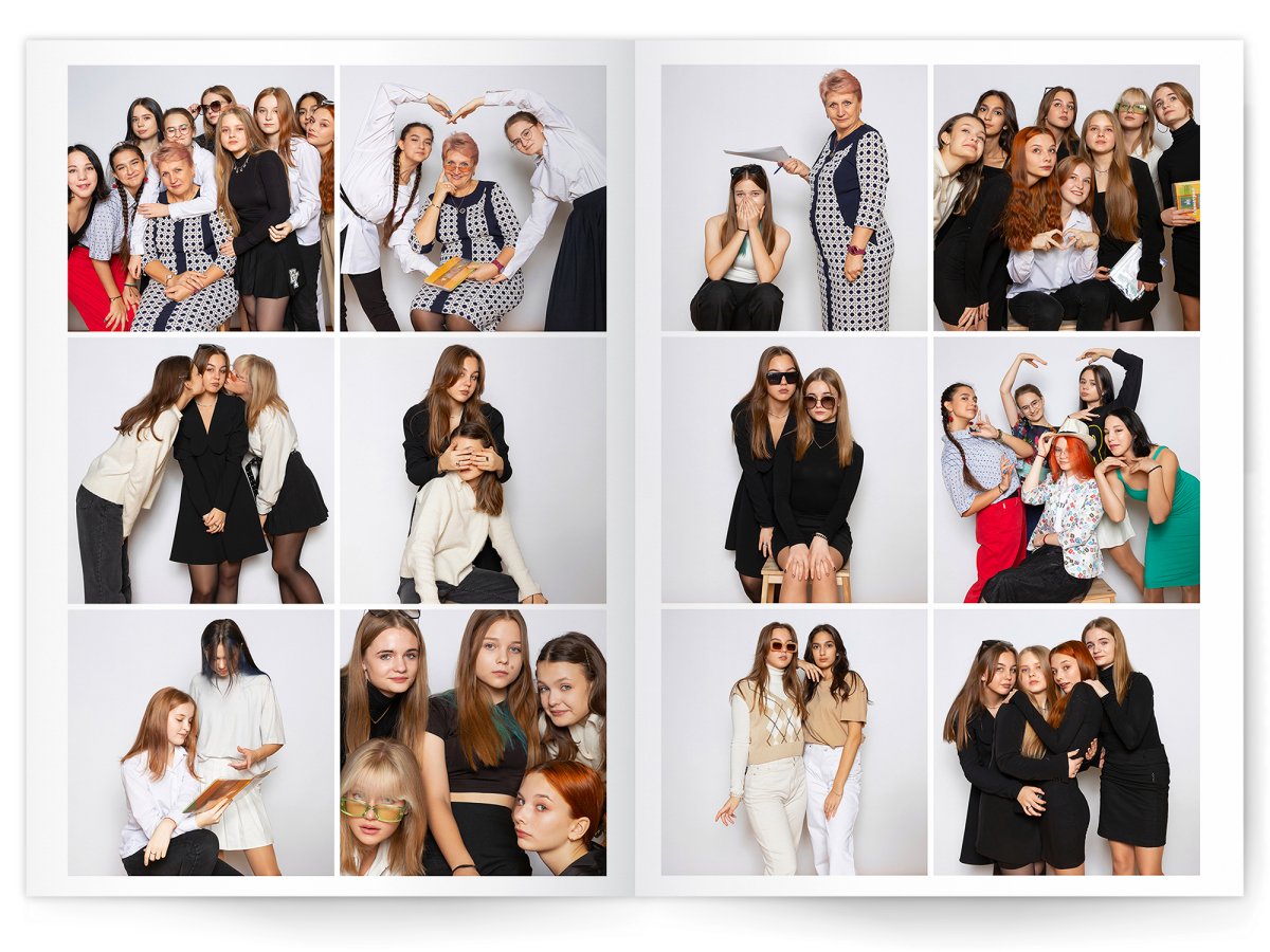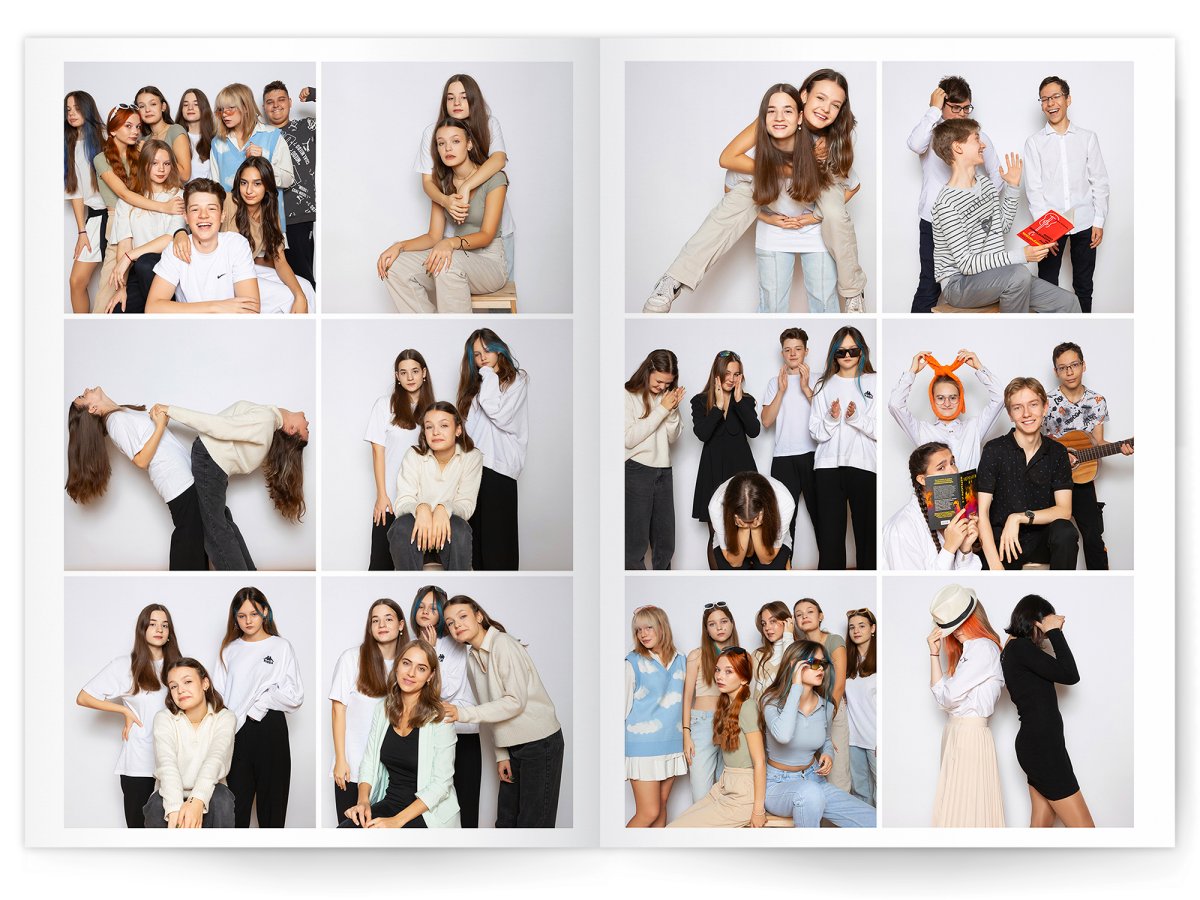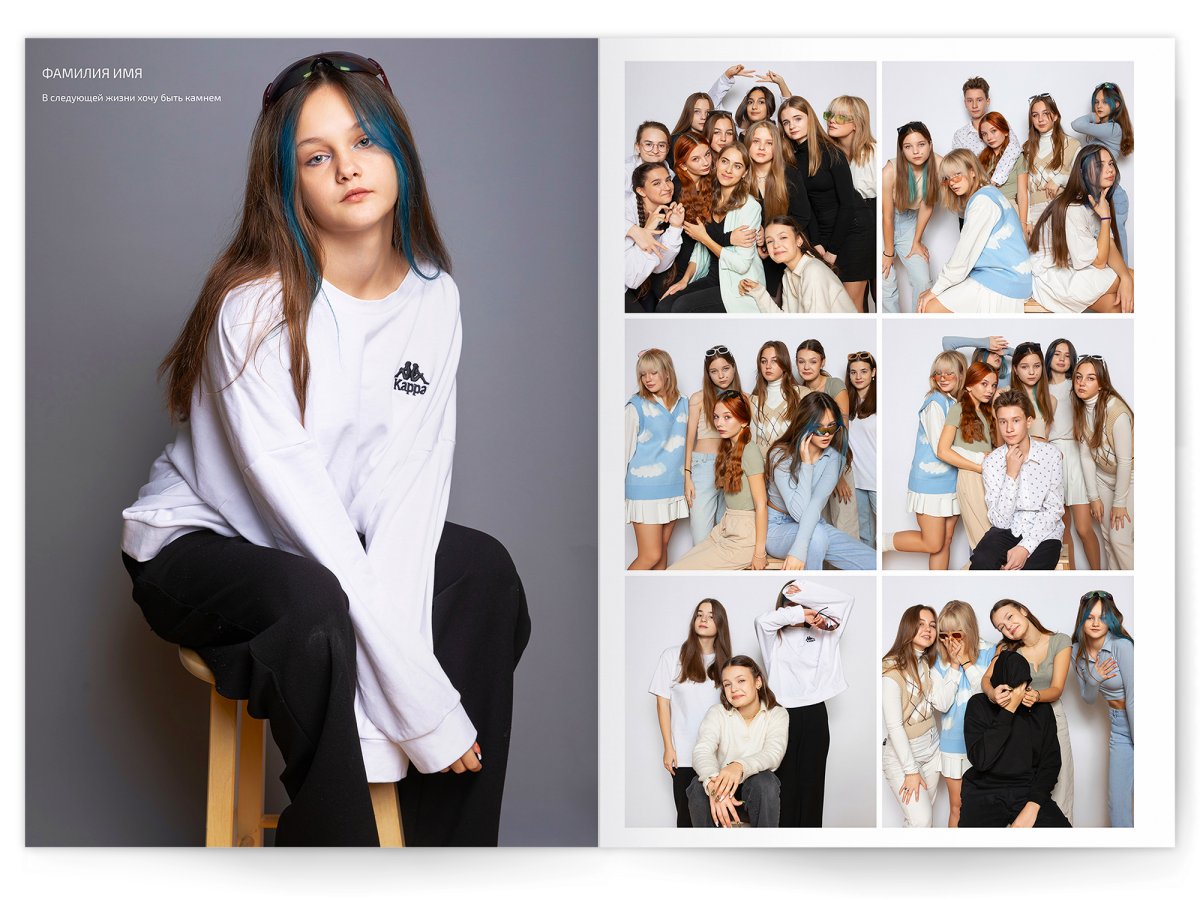 - Портреты всех одноклассников на развороте