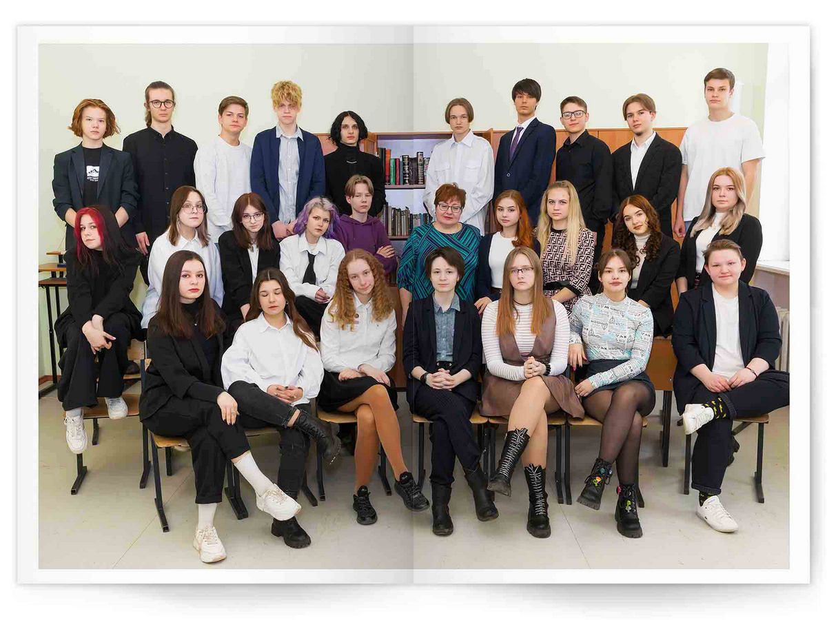• Портреты всех одноклассников на развороте