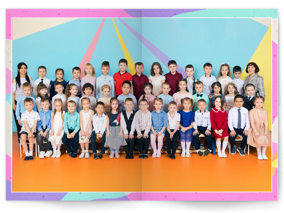 - Разворот с общей фотографией всей группы