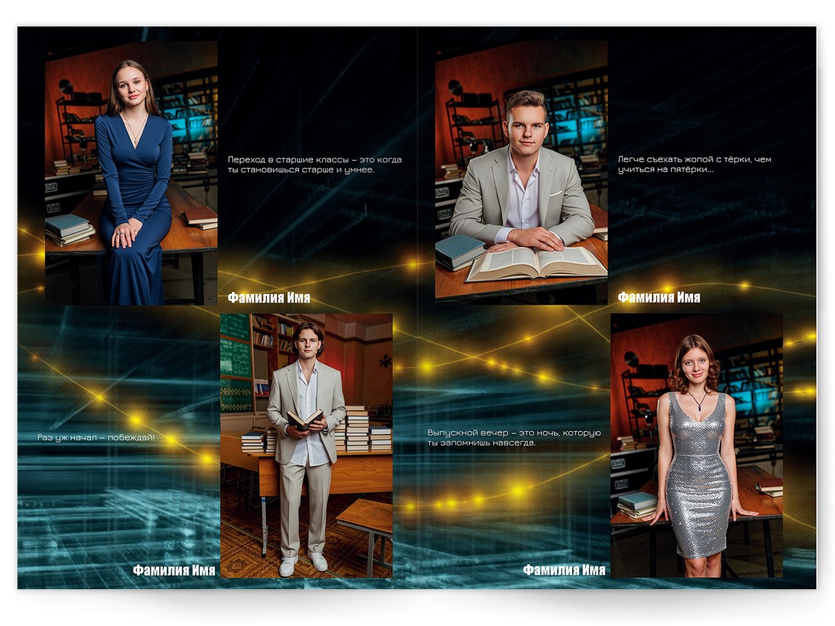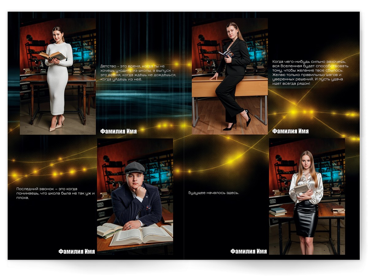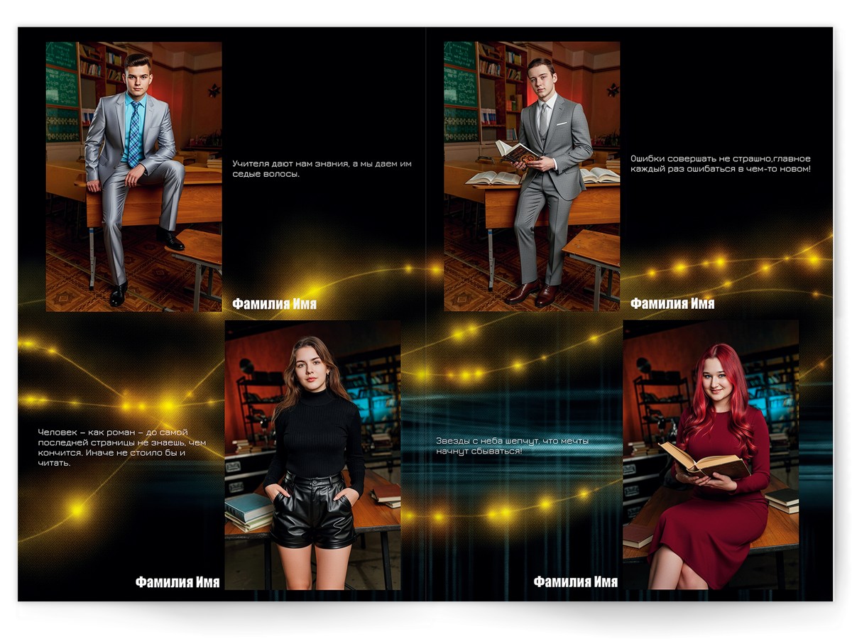- Портреты всех одноклассников на развороте